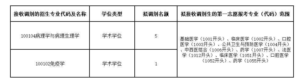 (4)调剂基本要求:①初试分数达到调剂要求。②第一志愿专业与调入专业相同相近,或初试科目与调入专业初试科目相同相近。③报考临床类专业学位(“105100临床医学”“105200口腔医学”)硕士研究生的考生可按相关政策调剂到其他专业,报考其他专业(含医学学术学位)的考生不可调剂到临床类专业学位。④符合《金沙