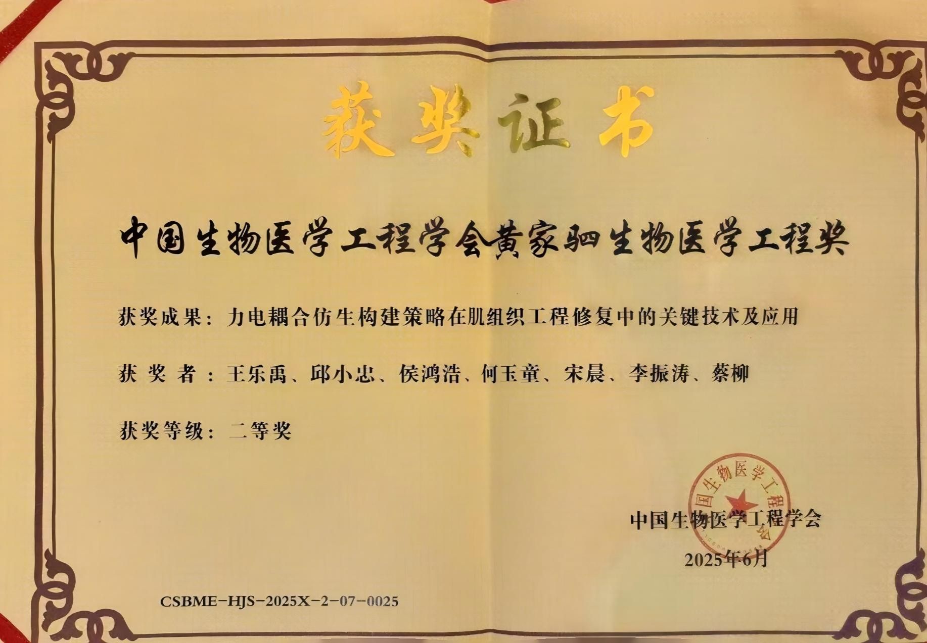 “黄家驷生物医学工程奖”是我国生物医学工程学科最高科技奖,奖项以我国著名医学家黄家驷院士命名,每两年评选一次。该奖项强调生物医学与工程科学的交叉融合,倡导立足本土的原始创新,鼓励以临床应用为驱动的研究,旨在秉承其医工交叉的学术理念,奖励生物医学工程领域在基础研究、技术发明和科技进步方面贡献卓著的科技成果。2024-2025年度,“黄家驷生物医学工程奖”共授予奖项6项,包括基础研究类一等奖1项、二等奖1项,科技进步奖一等奖1项、二等奖1项,技术发明一等奖1项、二等奖1项。