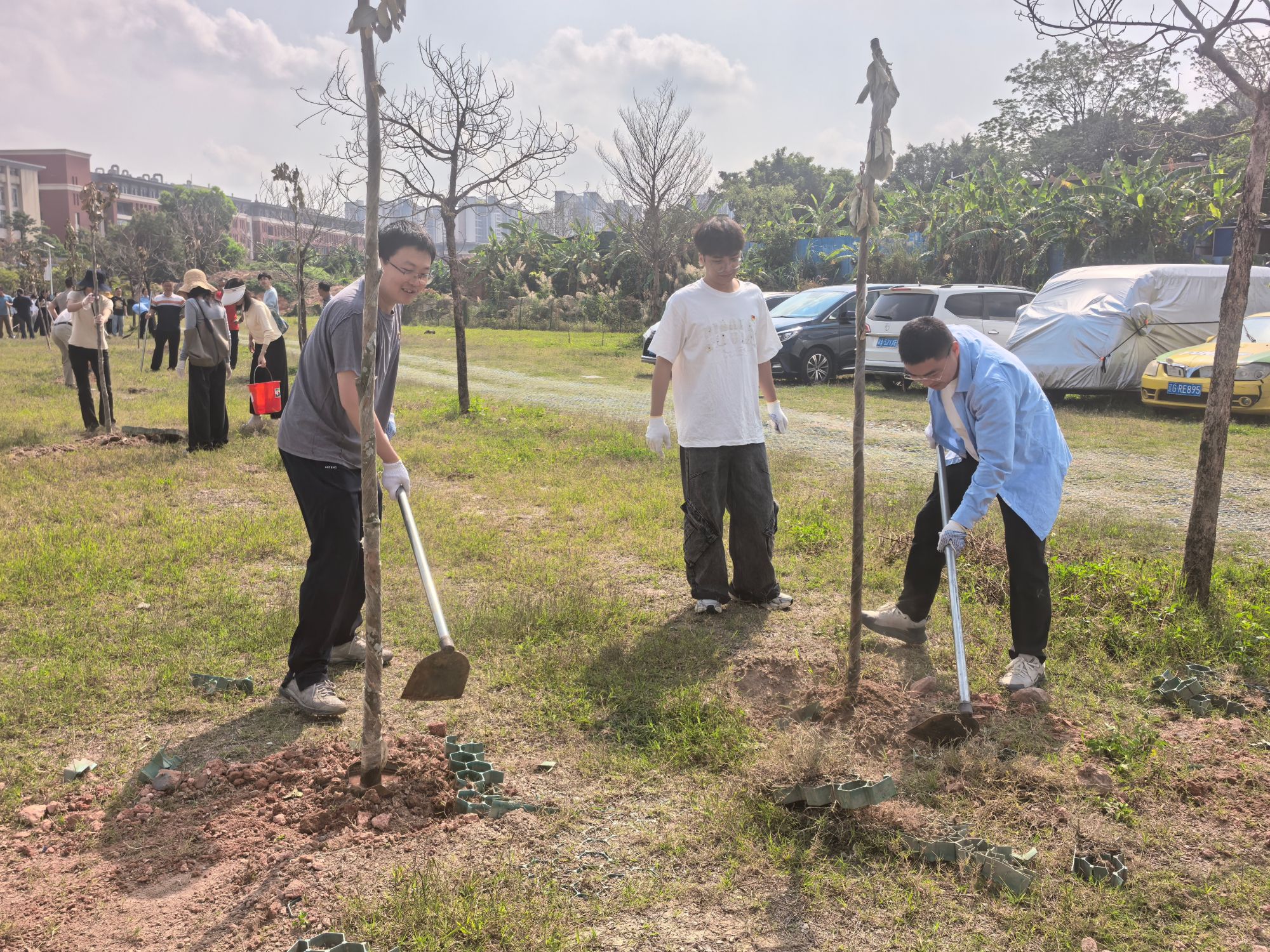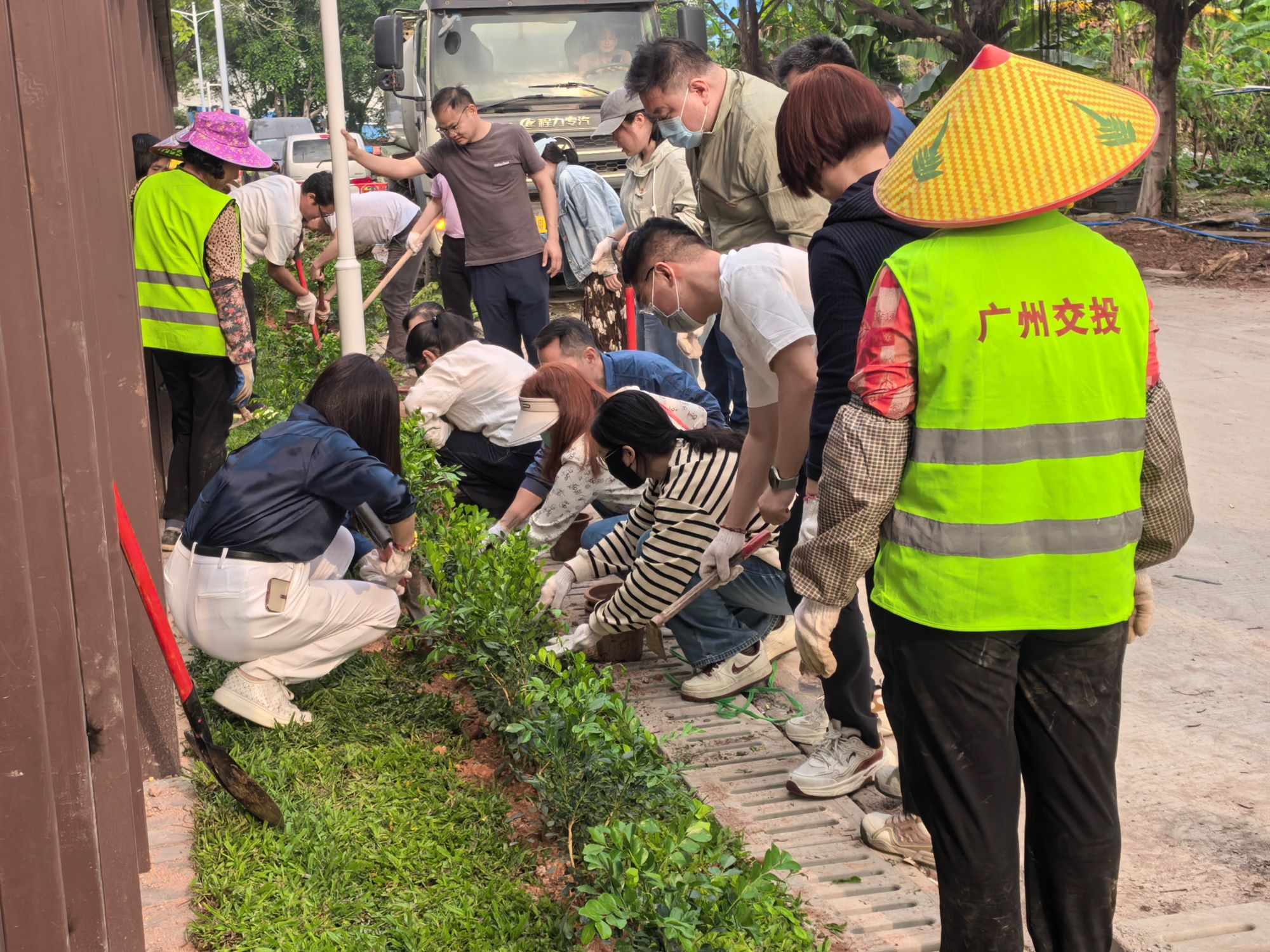 党委组织两批党员和入党积极分子赴共建单位广州市番禺区新造镇秀发村、思贤村开展“携手栽新苗,党旗迎风飘”义务植树活动,共计60余人次参加。