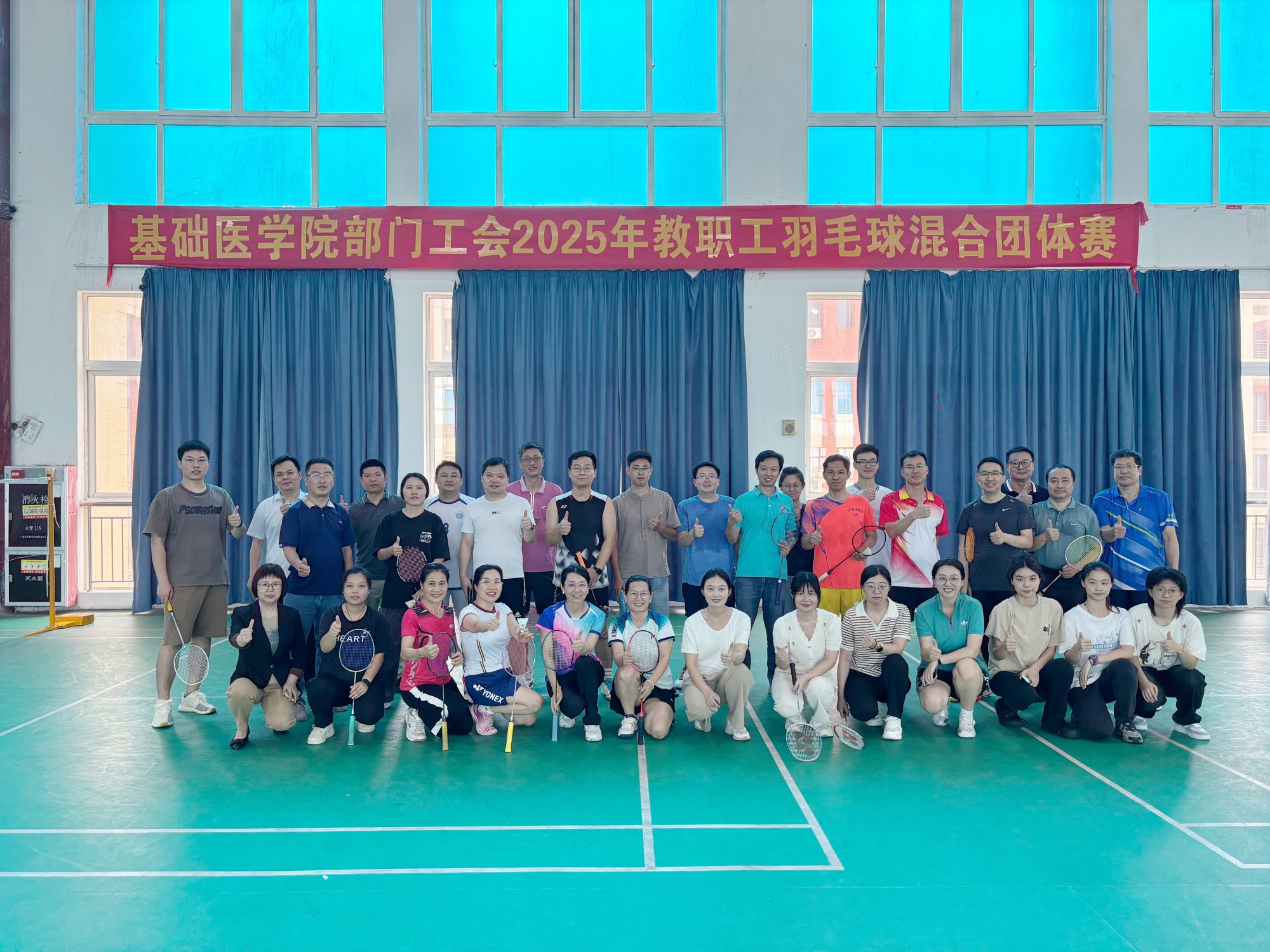 部门工会举办了一场别开生面的羽毛球教职工混合团体赛,比赛共有9支参赛队报名参加。比赛秉持着“友谊第一,比赛第二”的理念,选手们青春自信,拉拉队员热情洋溢,现场气氛热烈,欢声笑语不断。