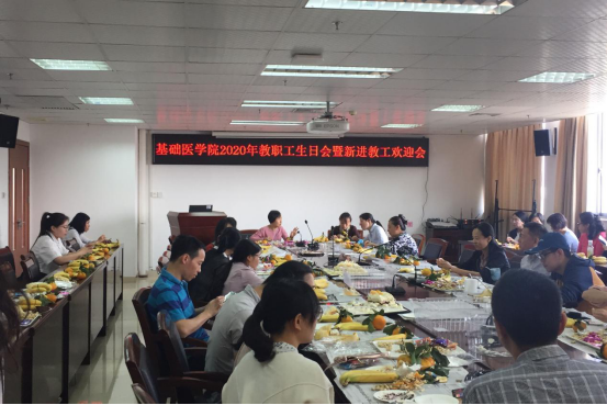 组织2020年教职工生日会暨新进教工欢迎会。教职员工欢聚一堂,共度快乐时光。