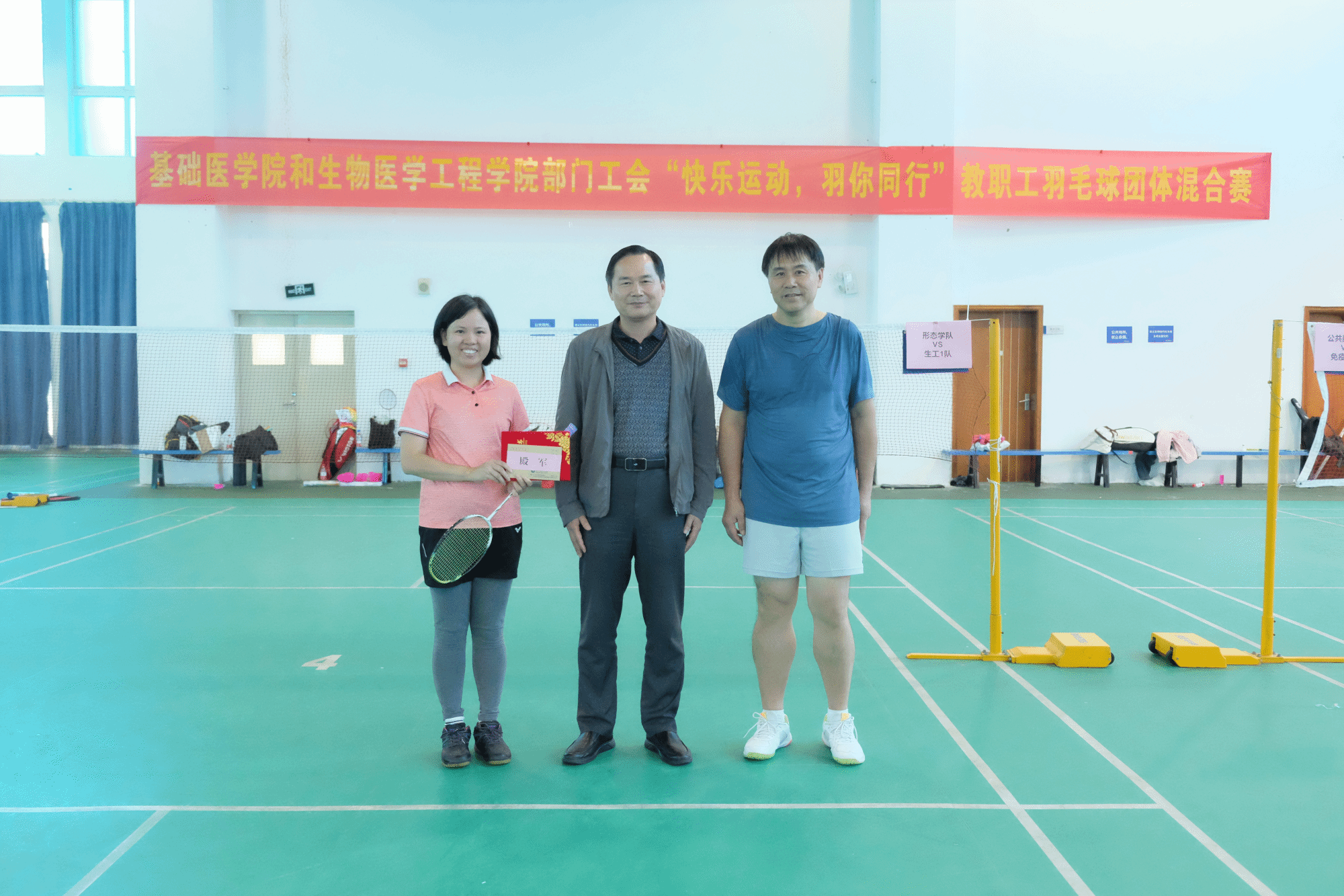 部门工会联合举办了一场别开生面的羽毛球教职工混合团体赛,比赛共有八个小组积极参加。比赛秉持着“友谊第一,比赛第二”的理念,选手们青春自信,拉拉队员热情洋溢,现场气氛热烈,欢声笑语不断。