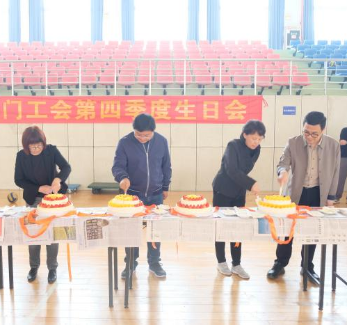 领导向各位寿星致以生日祝福,大家同切生日蛋糕,共享喜悦,倍感温暖。