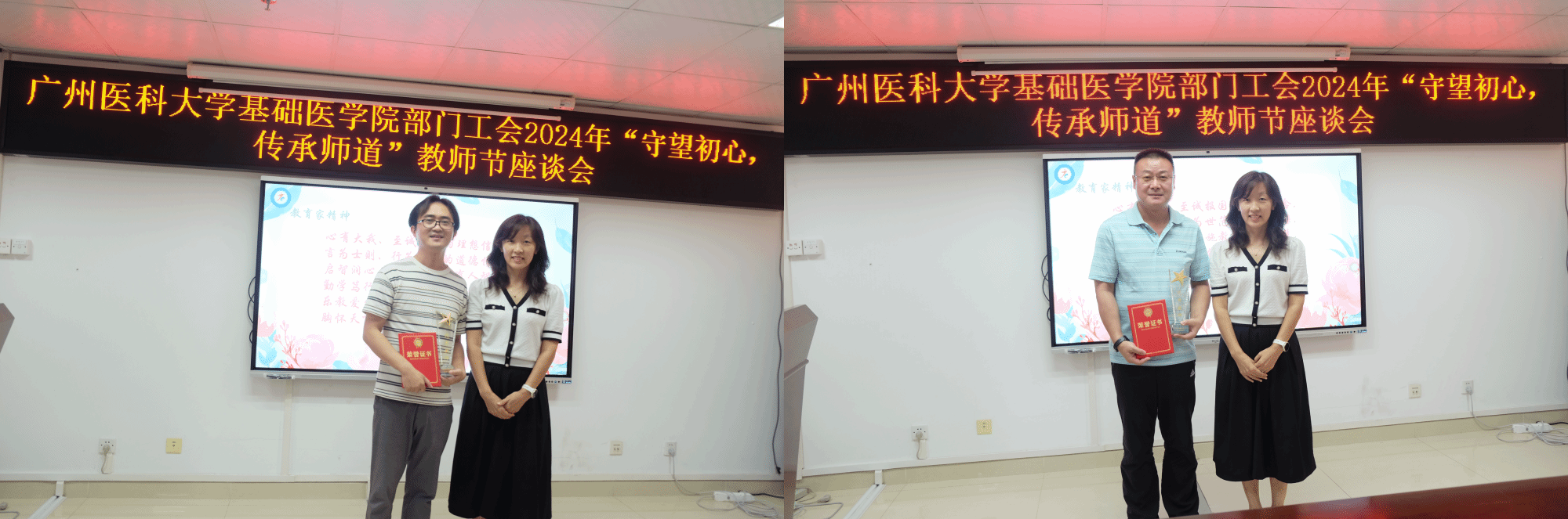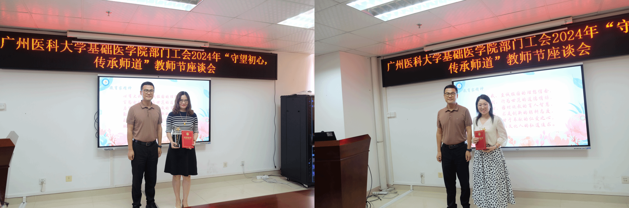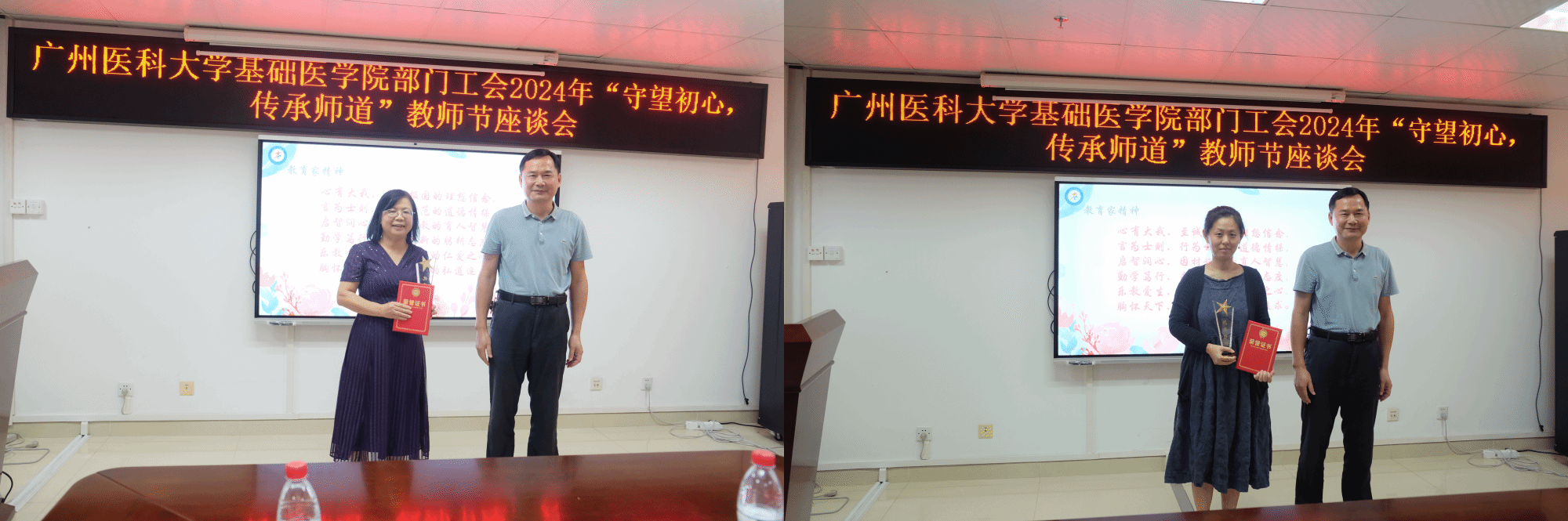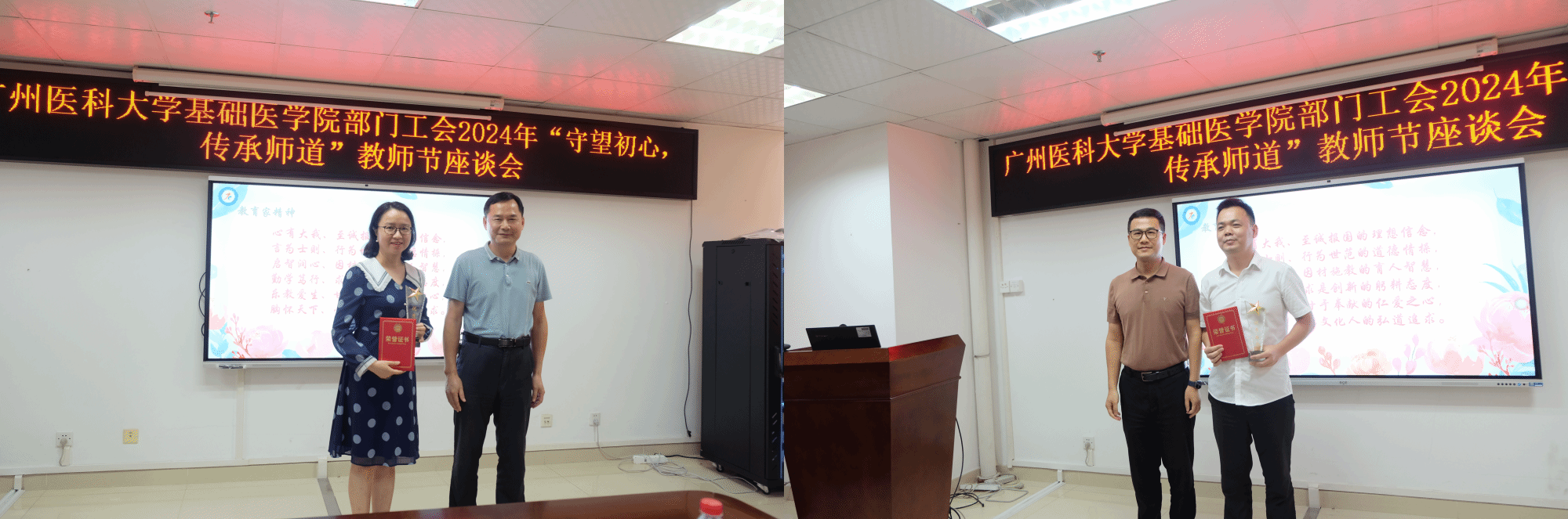 领导班子向老师们致以节日祝福并勉励老师们大力弘扬教育家精神,做新时代好老师。冯杜副院长介绍院级优秀教师遴选情况并宣读院级优秀教师名单,随即进行颁奖仪式。