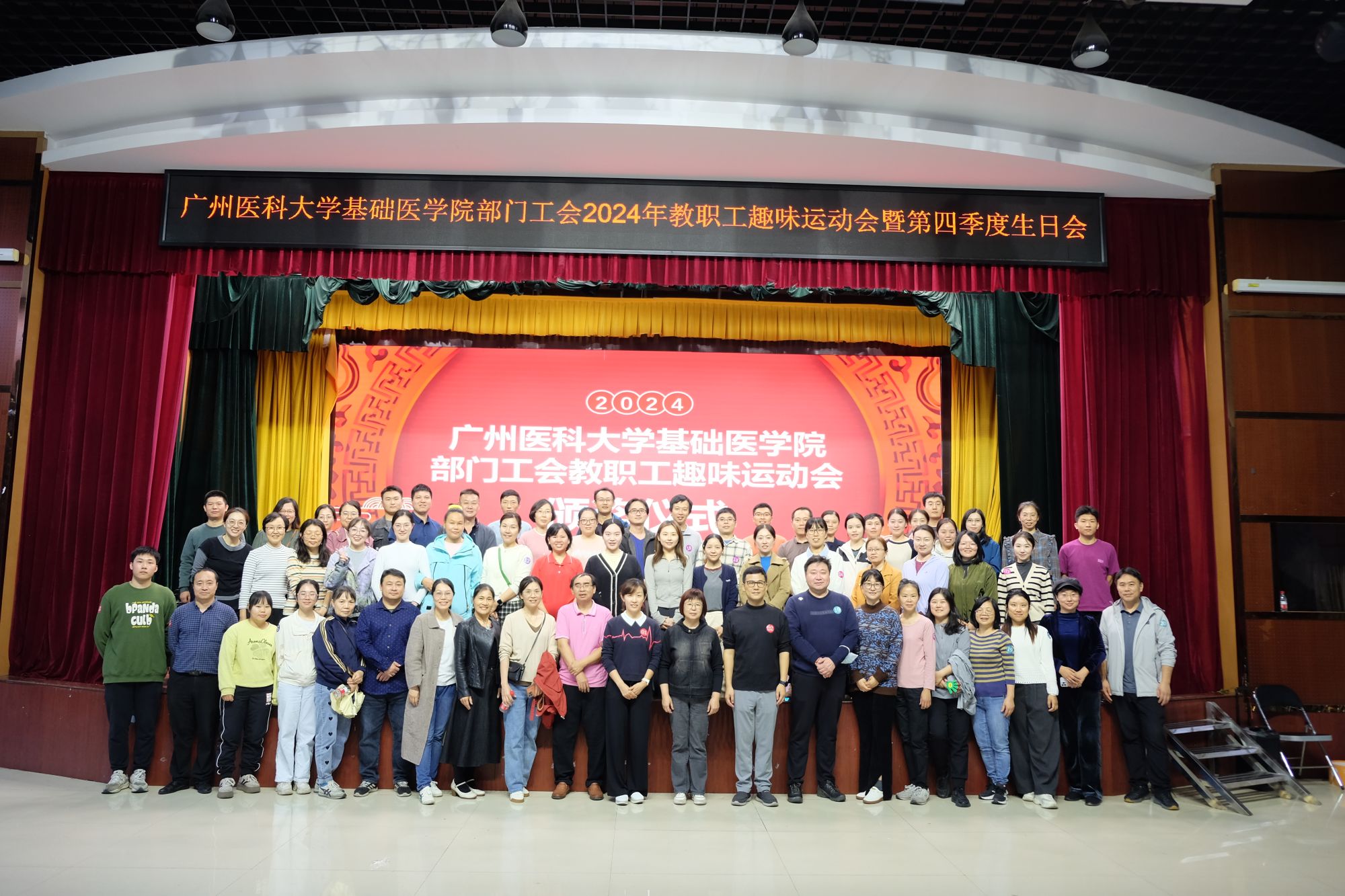部门工会于2024年11月21日在学生活动中心开展了主题为“奋力拼搏二十载,齐聚基础续辉煌”的秋季学期教职工趣味运动会暨第四季度生日会。